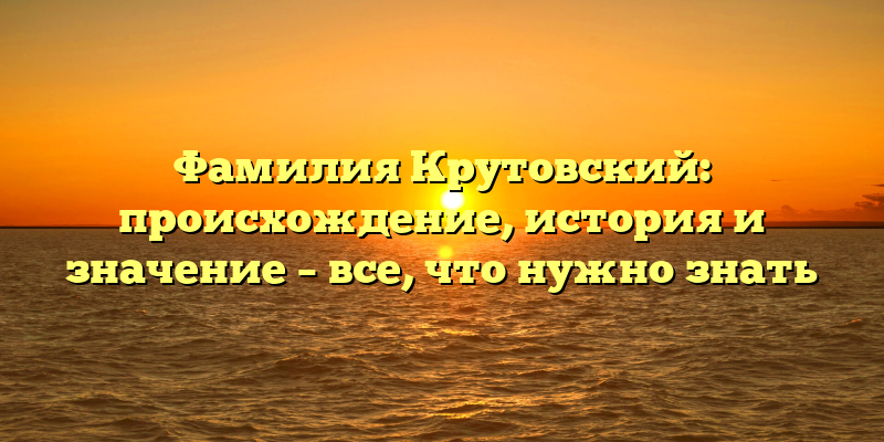 - Открытие тайны: история происхождения фамилии Крутовский и ее значение в наше время
