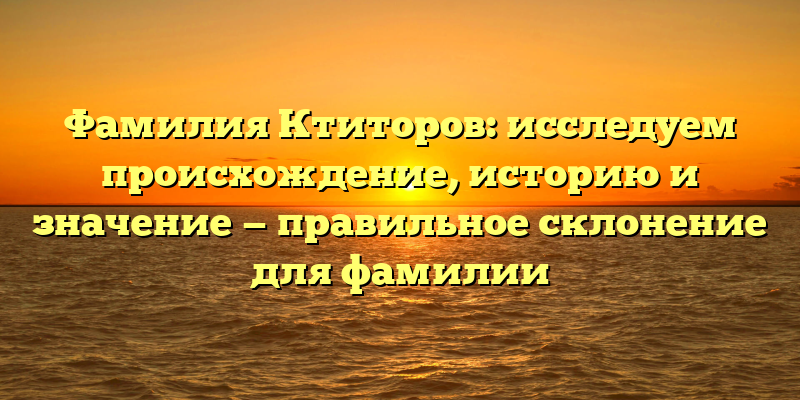 - Фамилия Ктиторов: история происхождения и значения, а также правильное склонение — узнайте все на нашем сайте!