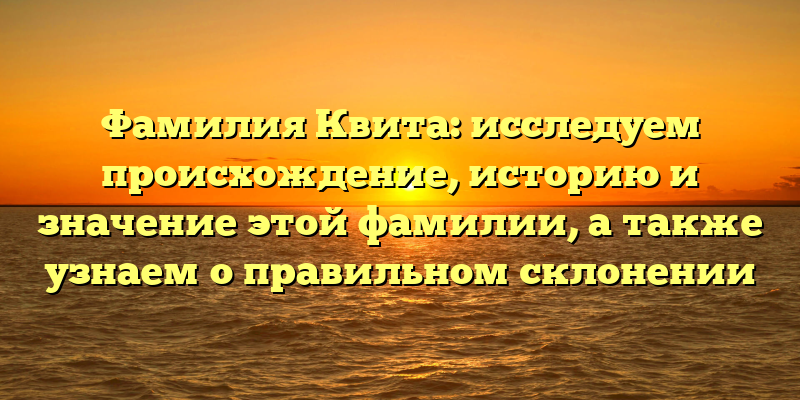 - Фамилия Квита: происхождение, история и значение. Последние научные исследования и правила склонения.