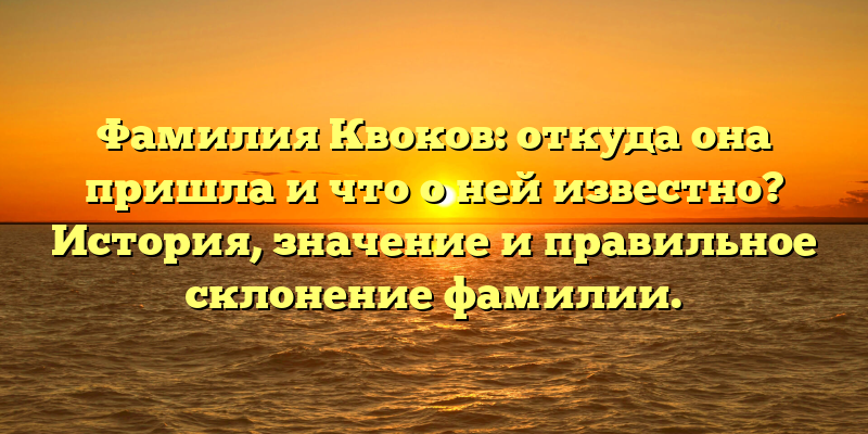 - Откуда происходит фамилия Квоков: история, значение и правильное склонение для использования — SEO-заголовок, который содержит ключевые слова и интересует читателя.