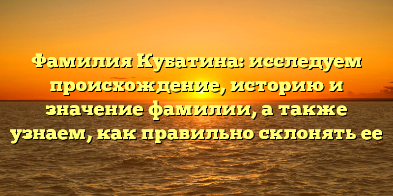 - Фамилия Кубатина: происхождение, история и значение, а также правильное склонение — все, что вы хотели узнать о своей фамилии.