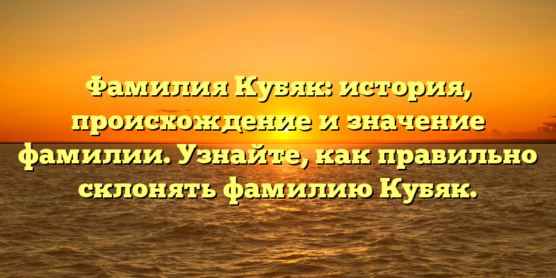 Полная история фамилии Кубяк: происхождение и значение, а также правила склонения