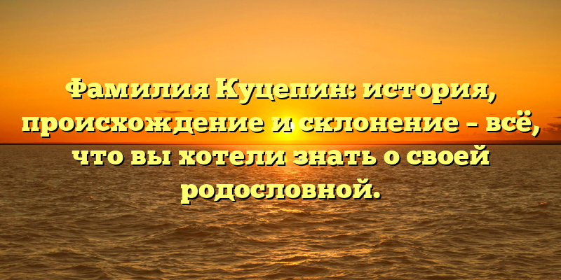 - Рассказ о фамилии Куцепин: истоки, варианты склонения и интересные факты из прошлого вашей родной фамилии