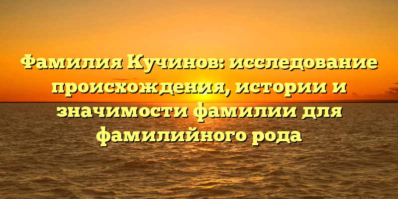 Если вы являетесь членом фамилийного рода Кучиновых или интересуетесь историей фамилий, то эта статья для вас. Прочитав ее, вы узнаете много интересного о своей фамилии и ее истории, а может быть, даже найдете своих предков и родственников.