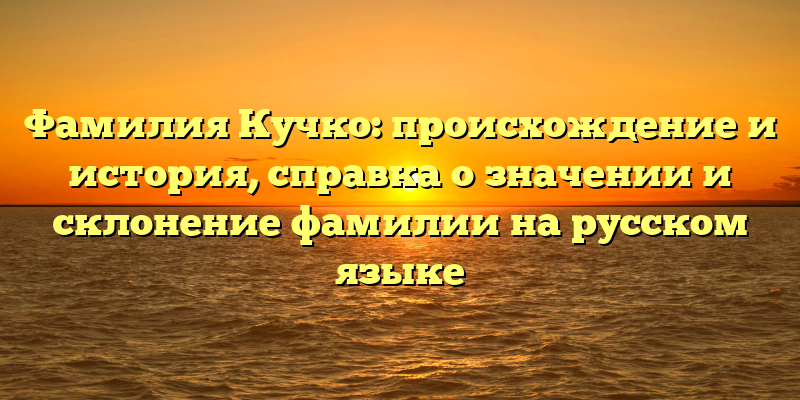 - Фамилия Кучко: происхождение и история. Выясняем значение и склонение фамилии на русском языке