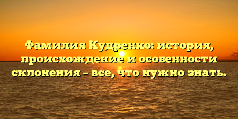 - Раскрываем тайны фамилии Кудренко: происхождение, история и склонение в одной статье!