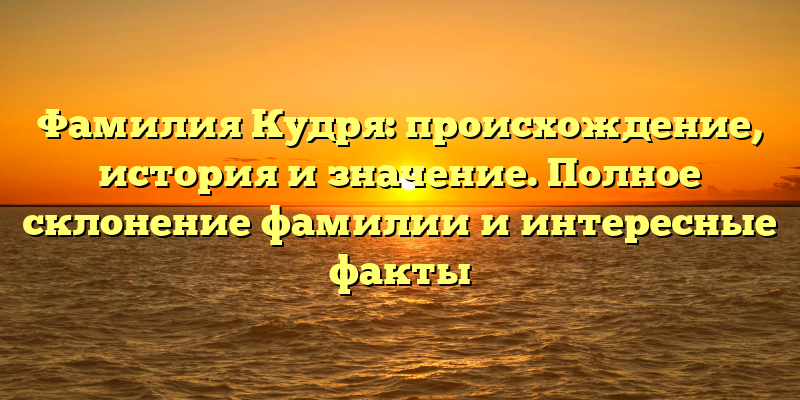 - Исследуем происхождение и значение фамилии Кудря: полное склонение и увлекательные факты в одной статье