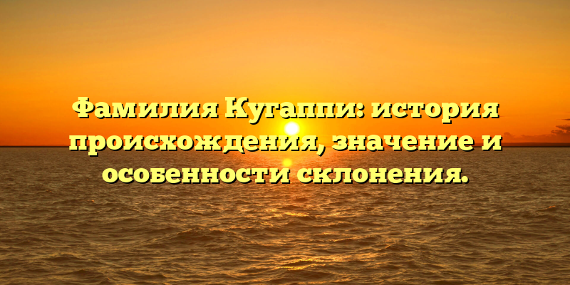 - Узнайте подробнее об истории и значении фамилии Кугаппи, а также о ее особенностях склонения