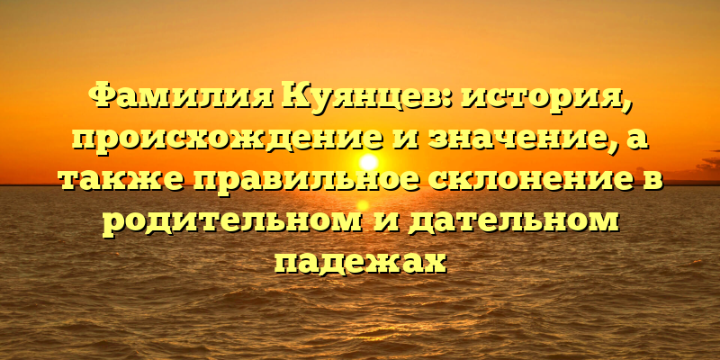 - Фамилия Куянцев: происхождение, история и правила склонения в родительном и дательном падежах — познакомьтесь с генеалогией и грамматикой фамилии Куянцев!