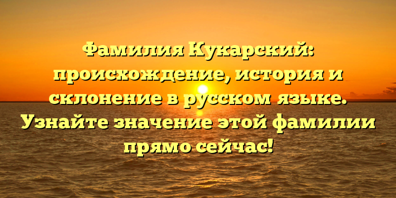 - Раскрываем историю фамилии Кукарский: происхождение, склонение и значение в русском языке