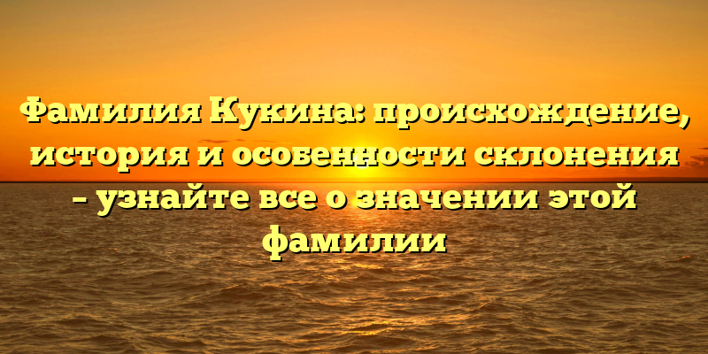 - Фамилия Кукина: происхождение, история и склонение — все, что нужно знать о значении этого русского имени!