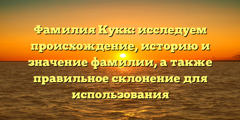 - Фамилия Кукк: исследуем происхождение, историю и значение фамилии, а также правильное склонение для использования