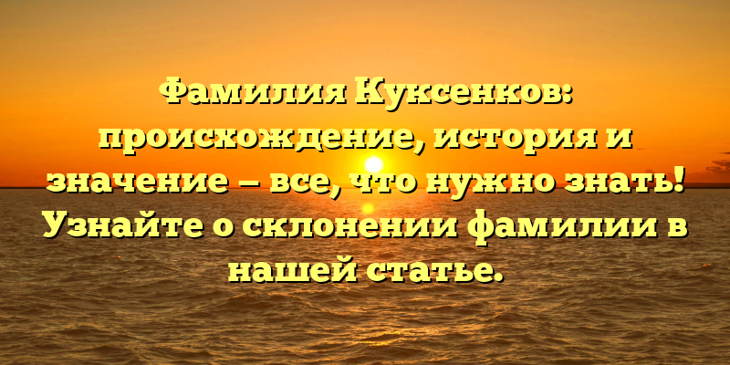 История и значение фамилии Куксенков: все, что нужно знать, включая склонение — узнайте в нашей статье!