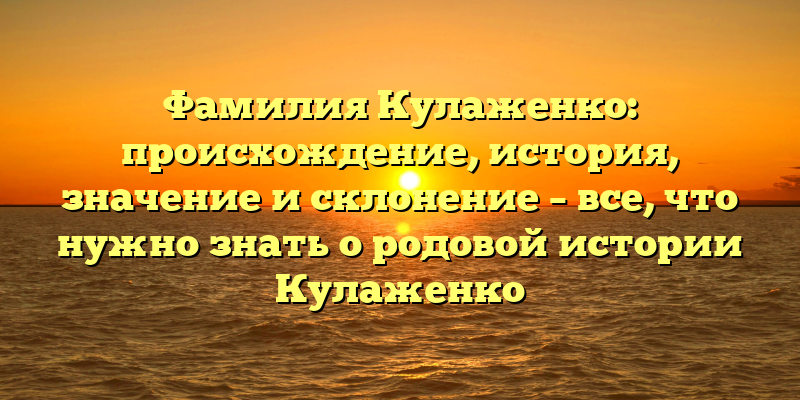 - Фамилия Кулаженко: история происхождения, значением и склонение – полный гид изучения родовой истории Кулаженко