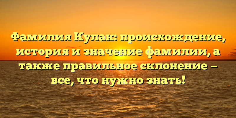 - Фамилия Кулак: история, происхождение и правильное склонение в одной статье