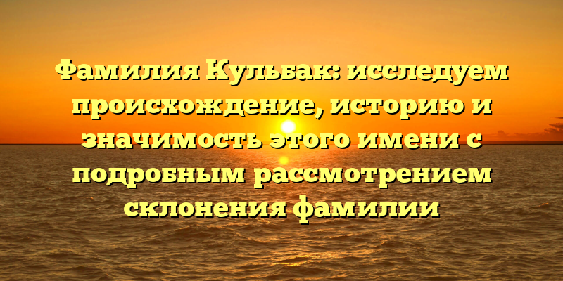 Исследуем происхождение, историю и значимость фамилии Кульбак: подробный обзор склонения этого имени
