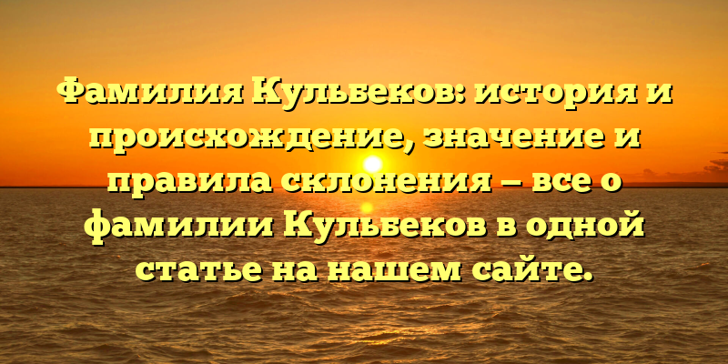 - Раскрываем все тайны фамилии Кульбеков: происхождение, значение и правила склонения в одной подробной статье на нашем сайте