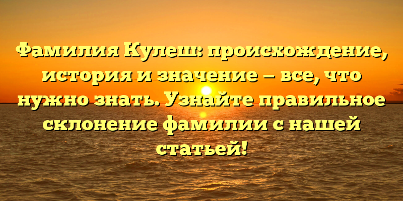 - Фамилия Кулеш: история, происхождение и значение, плюс правильное склонение. Познакомьтесь с уникальной историей этой фамилии!