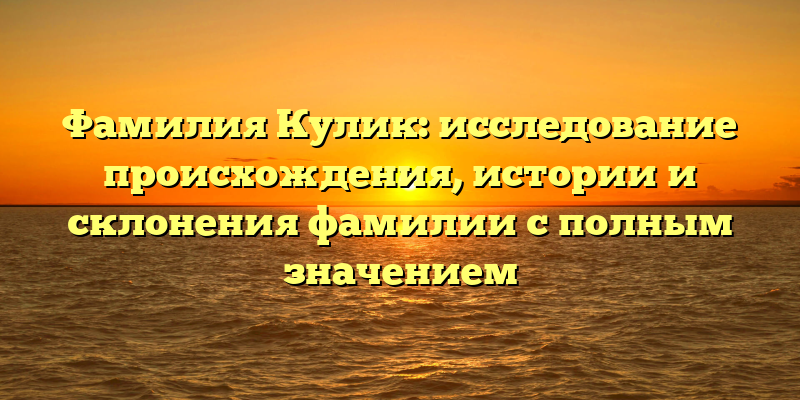 В данной статье мы расскажем о полной истории фамилии Кулик, ее происхождении, значении и склонении в различных языках и грамматических формах. Вы узнаете много интересного о происхождении своей фамилии, а также обширную информацию о культурном наследии своих предков.