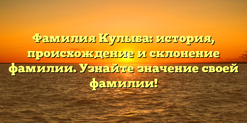 - Фамилия Кулыба: происхождение, история и склонение. Откройте тайны значения своей фамилии!