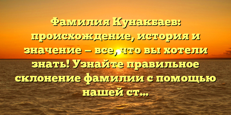 - Фамилия Кунакбаев: происхождение, история и значение — узнайте все, что нужно знать, включая правильное склонение!