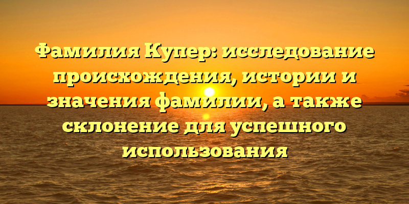 - Фамилия Купер: история, происхождение и значимость — все, что вы хотели знать, включая правильное склонение