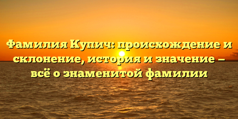 - Фамилия Купич: история, происхождение и значение. Узнайте всё о знаменитой фамилии и особенностях её склонения