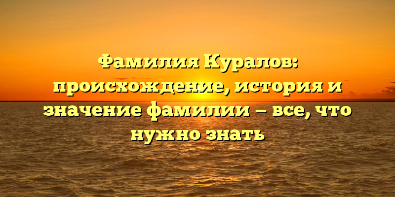 - Фамилия Куралов: история происхождения и культурное значение рода, которое важно знать