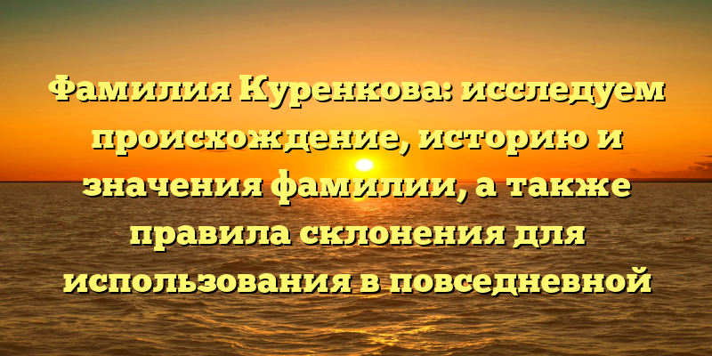 - Фамилия Куренкова: происхождение, история и значения, а также правила склонения для использования в повседневной жизни – полный гид по фамилии