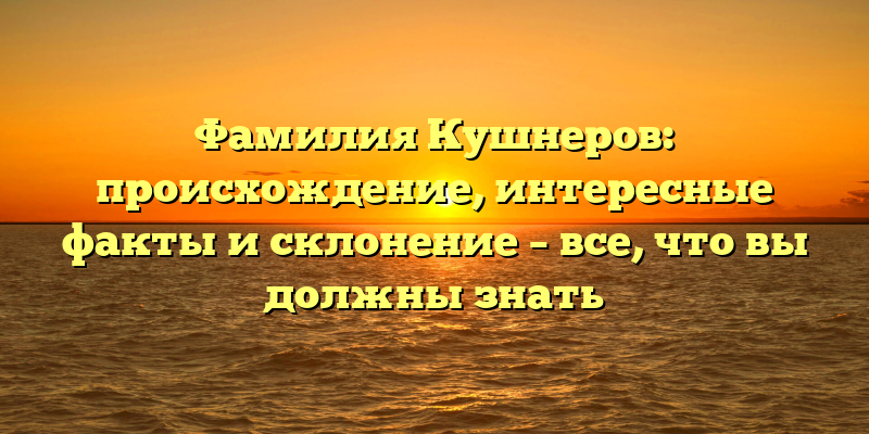 - Фамилия Кушнеров: происхождение, склонение и интересные факты — глубокое погружение в историю и культуру