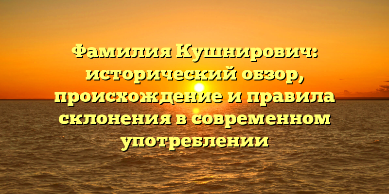 В данной статье мы рассмотрим исторический обзор фамилии Кушнирович, ее происхождение и значимость в современном мире. Также мы выясним правила склонения фамилии в современном употреблении и продемонстрируем их на примерах.