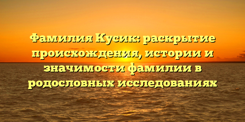 - Изучаем родословную: Фамилия Кусик — история происхождения и значения в генеалогических исследованиях