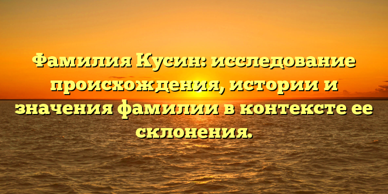 - Раскрываем тайны фамилии Кусин: происхождение, история и значения, а также правильное склонение