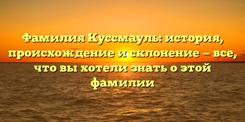 - Исследуем историю и происхождение фамилии Куссмауль, а также ее склонение — полный гид по фамилии!