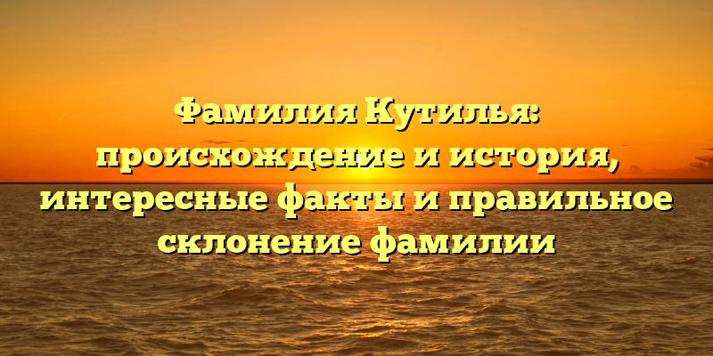 - Фамилия Кутилья: происхождение, история и правильное склонение – все, что нужно знать