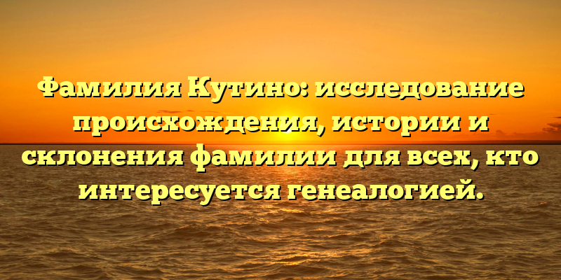 - Раскрываем тайны фамилии Кутино: исследование происхождения и истории для генеалогических исследований.