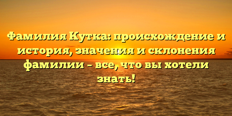 - Фамилия Кутка: история происхождения, значения и склонение — полное руководство для исследования своих корней