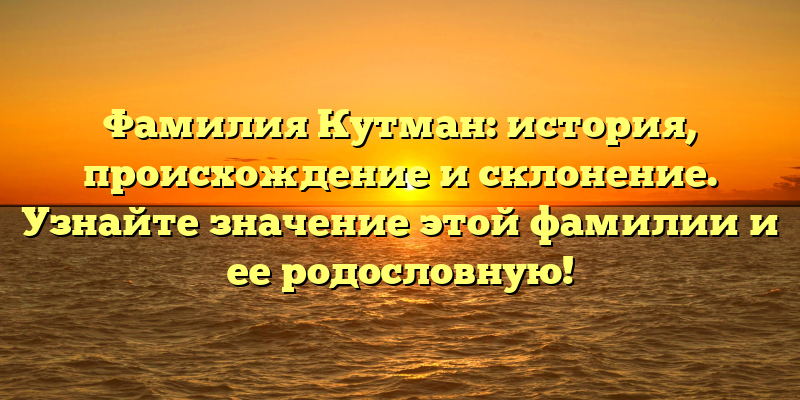 Узнать свою родословную и историю своей фамилии всегда было интересной задачей для людей. Фамилия Кутман не является самой распространенной, но история ее происхождения, значения и склонения может быть интересной для ее обладателей и исследователей.