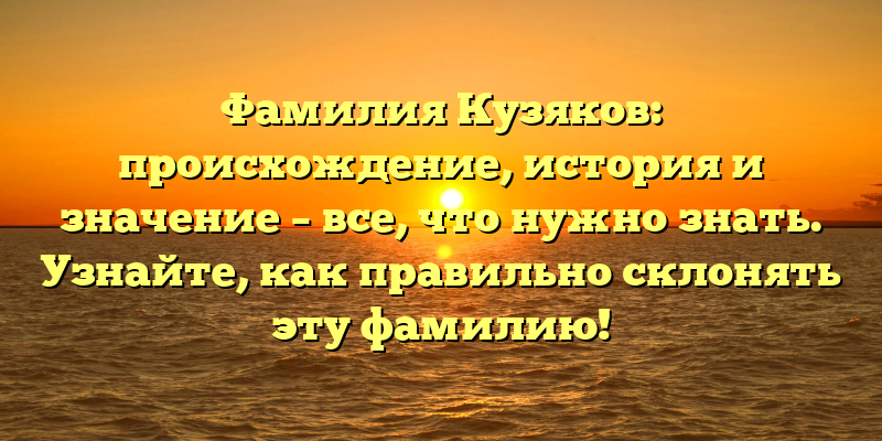 Рассказываем все о фамилии Кузяков: происхождение, значения и правила склонения.
