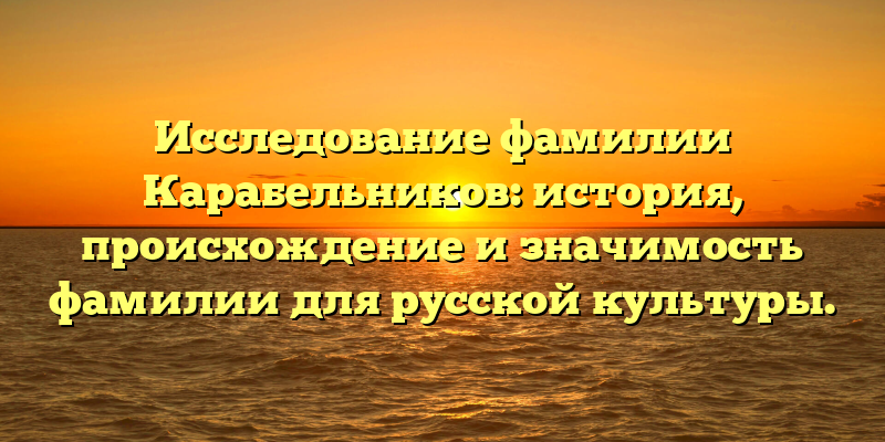 - Раскрываем историю и происхождение фамилии Карабельников и ее значение для русской культуры: исследование