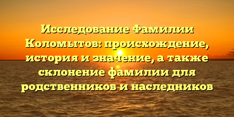 Откройте тайны Фамилии Коломытов: происхождение, история и склонение для наследников.
