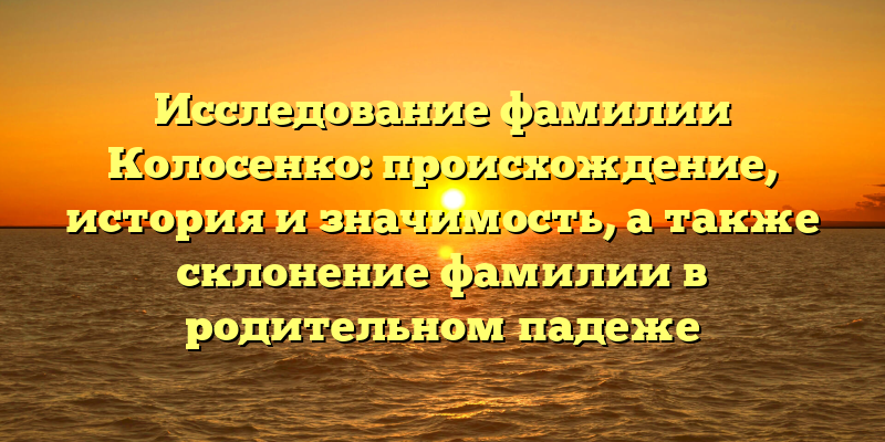 - Раскрываем тайны фамилии Колосенко: происхождение, история и склонение в родительном падеже