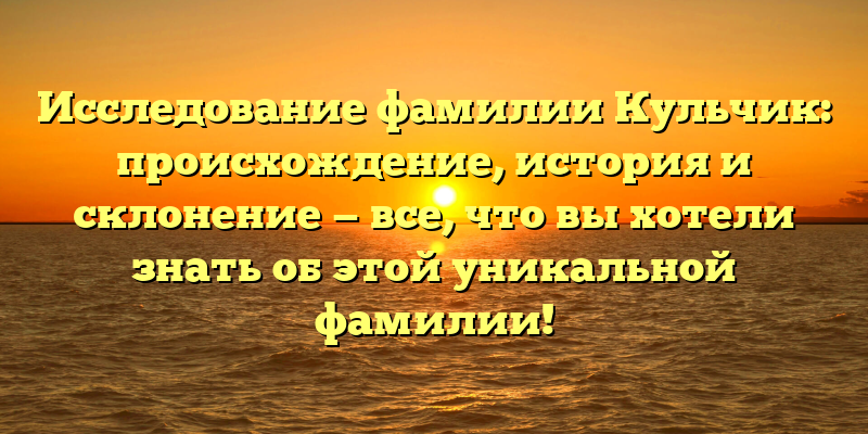 - Исследование фамилии Кульчик: история, происхождение и склонение — откройте тайны уникальной фамилии прямо сейчас!