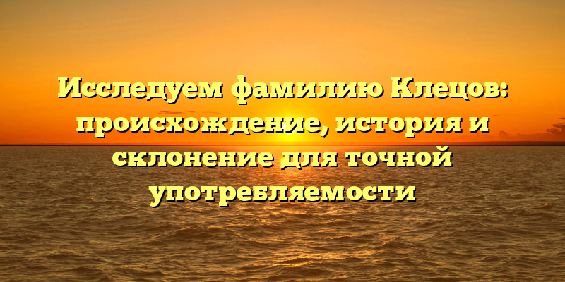 - Фамилия Клецов: происхождение, история и склонение – все, что вы хотели знать для правильного использования