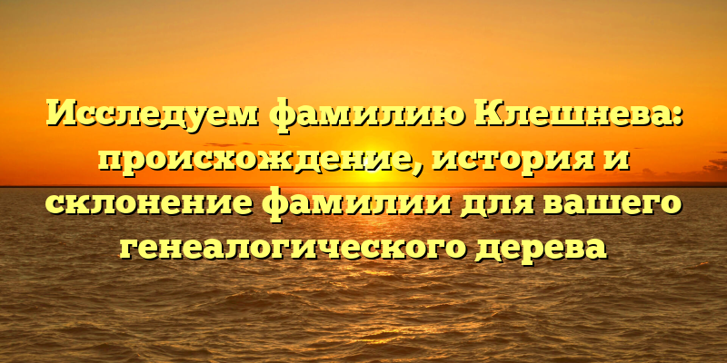 - Фамилия Клешнева: история происхождения и правильное склонение для исследования родословной