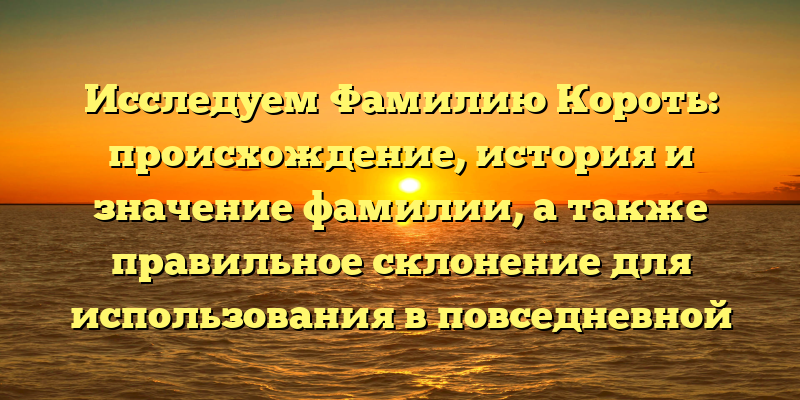 - Фамилия Короть: происхождение, история и значения, а также правила склонения для употребления в повседневной жизни — узнайте все о своей фамилии Короть!