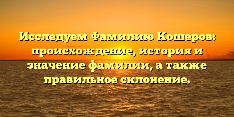 - Раскрываем тайны фамилии Кошеров: происхождение, история и правильное склонение в одной статье