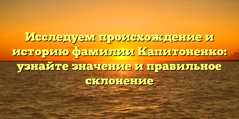 Раскрываем тайны происхождения фамилии Капитоненко: значение и правильное склонение в историческом контексте