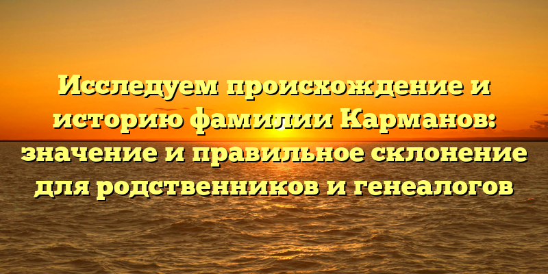 Каждая фамилия несет в себе особую историю и происхождение, которые иногда могут оказать влияние на характер и поведение носителей этого имени. Фамилия Карманов – одна из тех, которую можно отнести к категории редких и неизвестных. В данной статье мы рассмотрим происхождение этой фамилии, ее значение и правильное склонение для родственников и генеалогов.