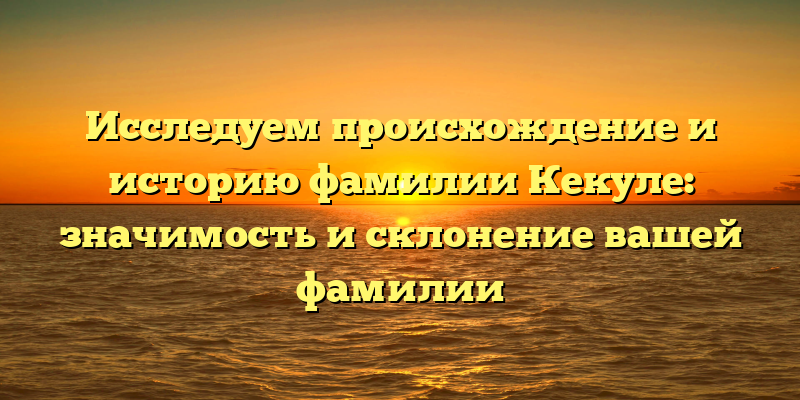 В данной статье мы рассмотрим происхождение фамилии Кекуле, ее распространение и влияние на окружающий мир, а также разберем склонение этой фамилии и ее варианты в различных языках.